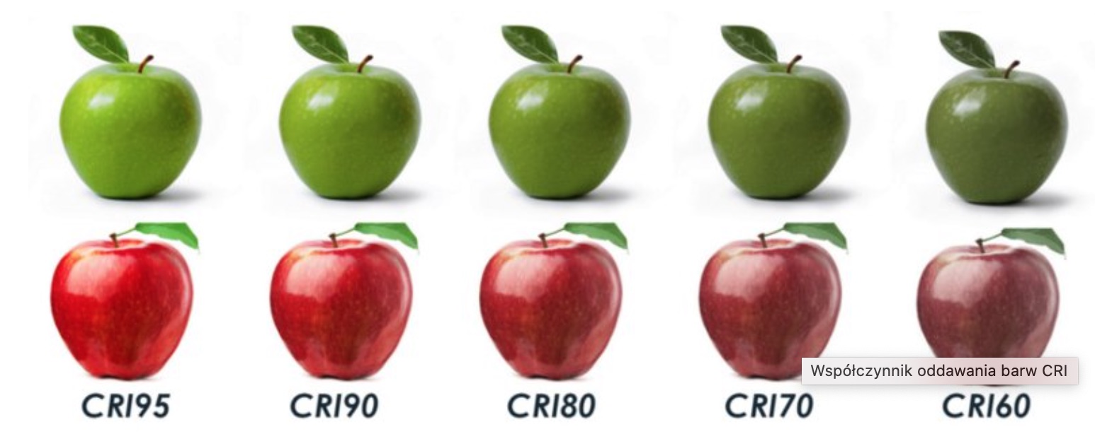 Większość taśm LED emituje światło CRI (RA) pomiędzy 60 a 80 – które nienaturalnie zmienia kolorystykę otoczenia.